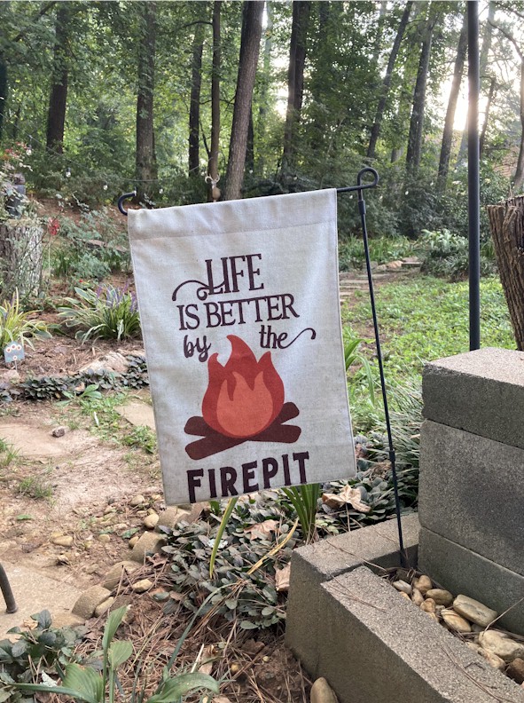 We love spending as much time outside as we can gardening, relaxing in the pool, and enjoying warm fires in our backyard fire pit area.