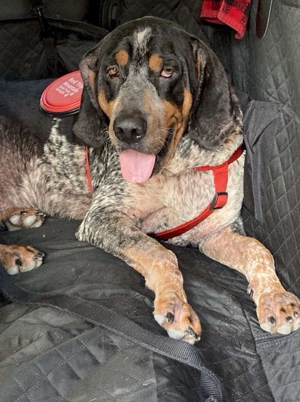 Woodrow "The Big Dog Baby" our bluetick coonhound.
